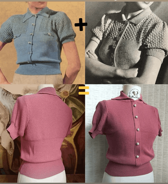 The shirt has a split collar with three small scallops, and is made with 2 different stitches: stockinette stitch and grain of rice stitch.