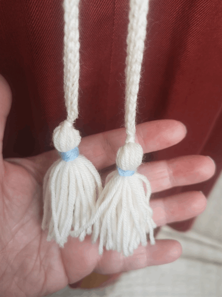 Heart belt with wool lace, tassels, eyelets and handmade hem.